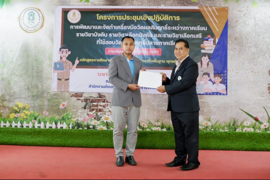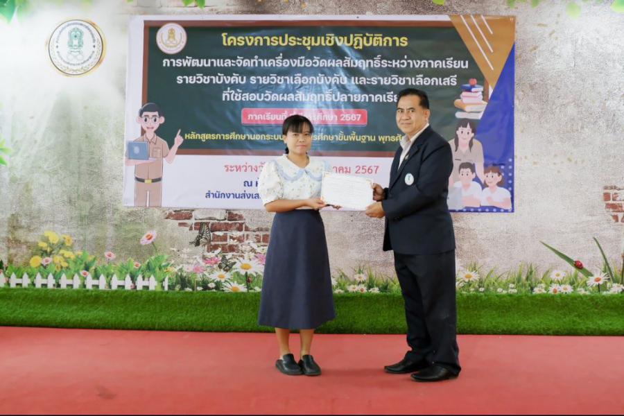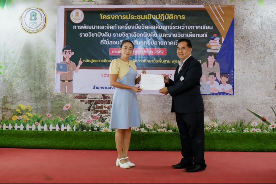 พิธีปิดโครงการประชุมปฏิบัติการการพัฒนาและจัดทำเครื่องมือวัดผบสัมฤทธิ์ระหว่างภาค รายวิชาบังคับ รายวิชาเลือกบังคับ และรายวิชาเลือกเสรีที่ใช้สอบวัดผลสัมฤทธิ์ปลายภาคเรียนที่ 2 ปีการศึกษา 2567 หลักสูตรการศ