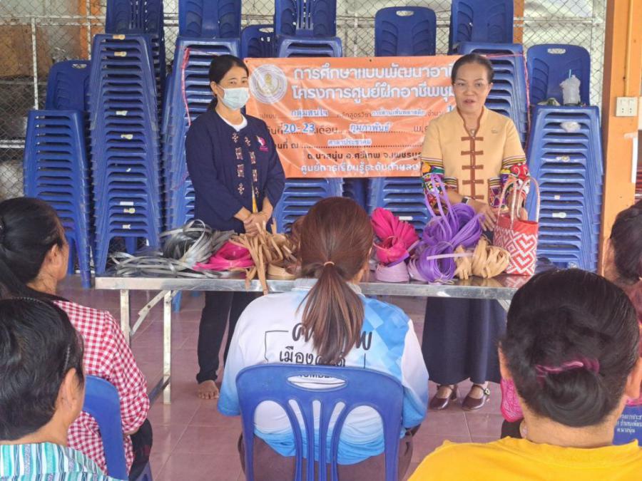 วันพฤหัสบดีที่ 20 กุมภาพันธ์ 2568 เวลา 11.00 น. นางสุกัญญา กาโกน ผู้่อำนวยการ สกร.ระดับอำเภอบึงสามพัน รักษาการในตำแหน่งผู้อำนวยการ สกร.ระดับอำเภอศรีเทพ ออกพื้นที่นิเทศ กิจกรรมการเรียนรู้เพื่อพัฒนาตนเอง โครงการศูนย์ฝึกอาชีพชุมชน หลักสูตรวิชาการสานฝาชีจากหวายเทียม 40 ชม. ตำบลประดู่งาม , หลักสูตรการทำไม้กวาดทางมะพร้าว 10 ชม. ตำบลหนองย่างทอย และหลักสูตรการสานเส้นพลาสติก 10 ชม. ตำบลนาสนุ่น อำเภอศรีเทพ จังหวัดเพชรบุรณ์ S:0
