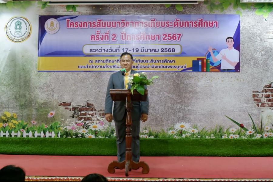 วันอังคารที่ 18 มีนาคม 2568 เวลา 09.00 น. สำนักงานส่งเสริมการเรียนรู้ประจำจังหวัดเพชรบูรณ์ จัดโครงการสัมมนาวิชาการ การประเมินเทียบระดับการศึกษา ครั้งที่ 2 ปีการศึกษา 2567 ระหว่างวันที่ 18 - 19 มีนาคม 2568 ณ ห้องประชุมพิสัณห์ปิ่นมาศ สำนักงานส่งเสริมการเรียนรู้ประจำจังหวัดเพชรบูรณ์ สถานศึกษาที่ทำหน้าที่เทียบระดับการศึกษา จำนวน 9 แห่ง ประธานในพิธิเปิด ว่าที่พันตรีดำริห์ ติยะวัฒน์ ผู้อำนวยการสำนักงาน สกร.ประจำจังหวัดเพชรบูรณ์ S:0