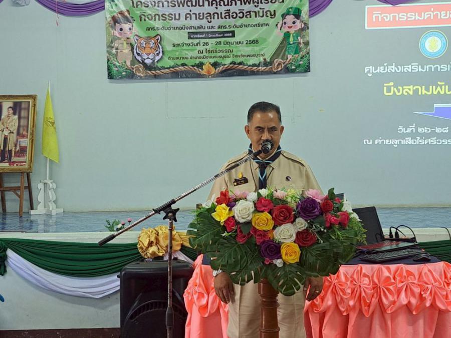 วันที่ 26 มิถุนายน 2568 เวลา 09.00 น. พิธีเปิดโครงการพัฒนาคุรภาพผู้เรียน กิจกรรมค่ายลูกเสือวิสามัญ ภาคเรียนที่ 1 ปีการศึกษา 2568 ณ ค่ายลูกเสือไร่ศรีวรรณ ตำบลนายม อำเภอเมืองเพชรบูรณ์ จังหวัดเพชรบูรณ์ จัดโดย สกร.ระดับอำเภอศรีเทพ ร่วมกับ สกร.ระดับอำเภอบึงสามพัน ระหว่างวันที่ 26-28 มิถุนายน 2568 S:0